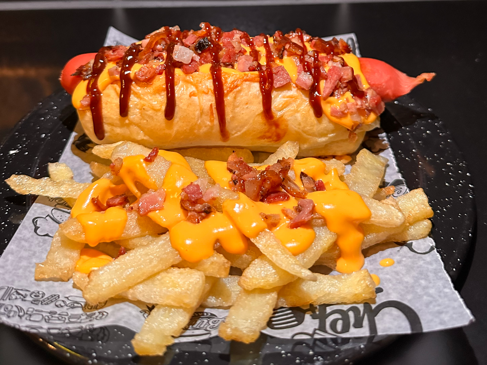 Yanquee Compartir Panecillo casero Salchicha alemana Chedar líquido Panceta Barbacoa Mayo casera Papas fritas$8.000 Observaciones 0 / 150